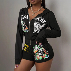 2025 Cross-border European and American women's spring and summer positioning printed long sleeve shorts set