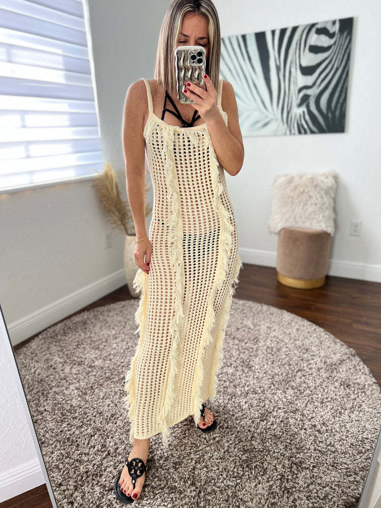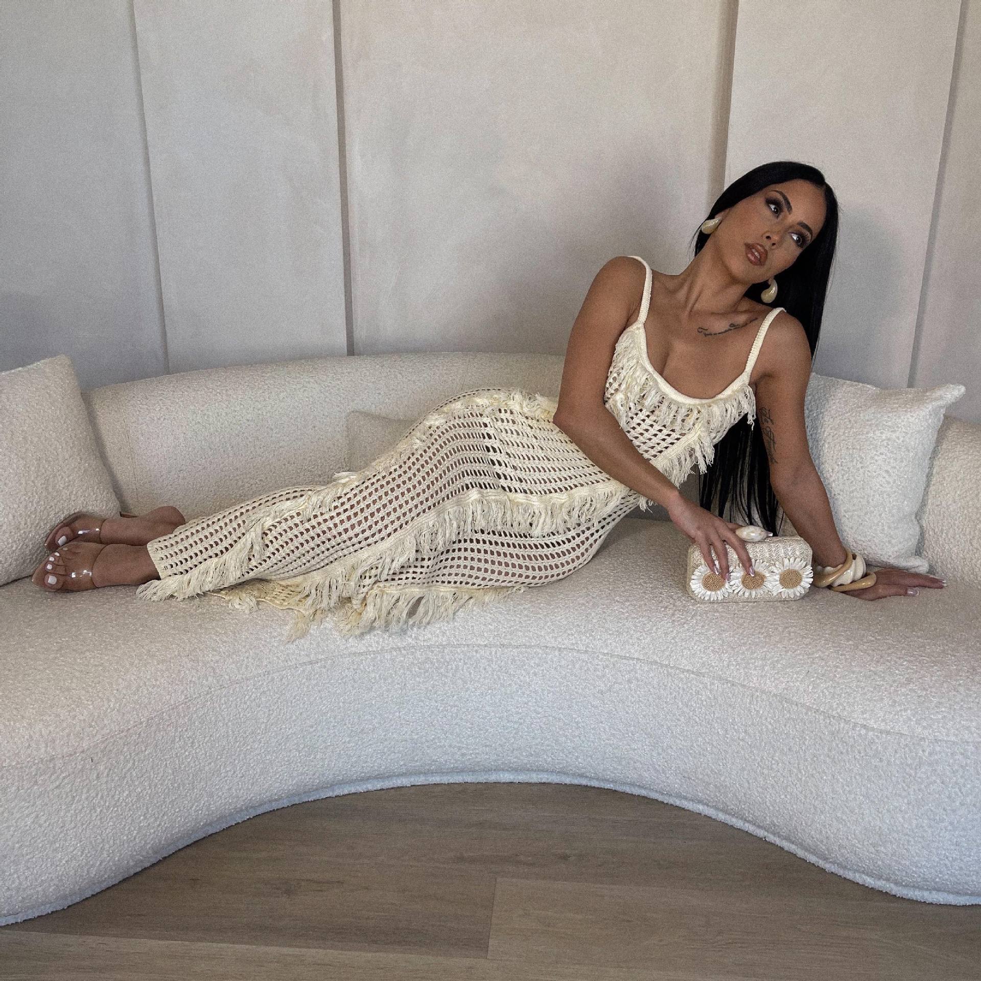 AJ4451 European and American Women's Dress Fashion Sunscreen Cover Up Beach Long Dress Knitted Dress