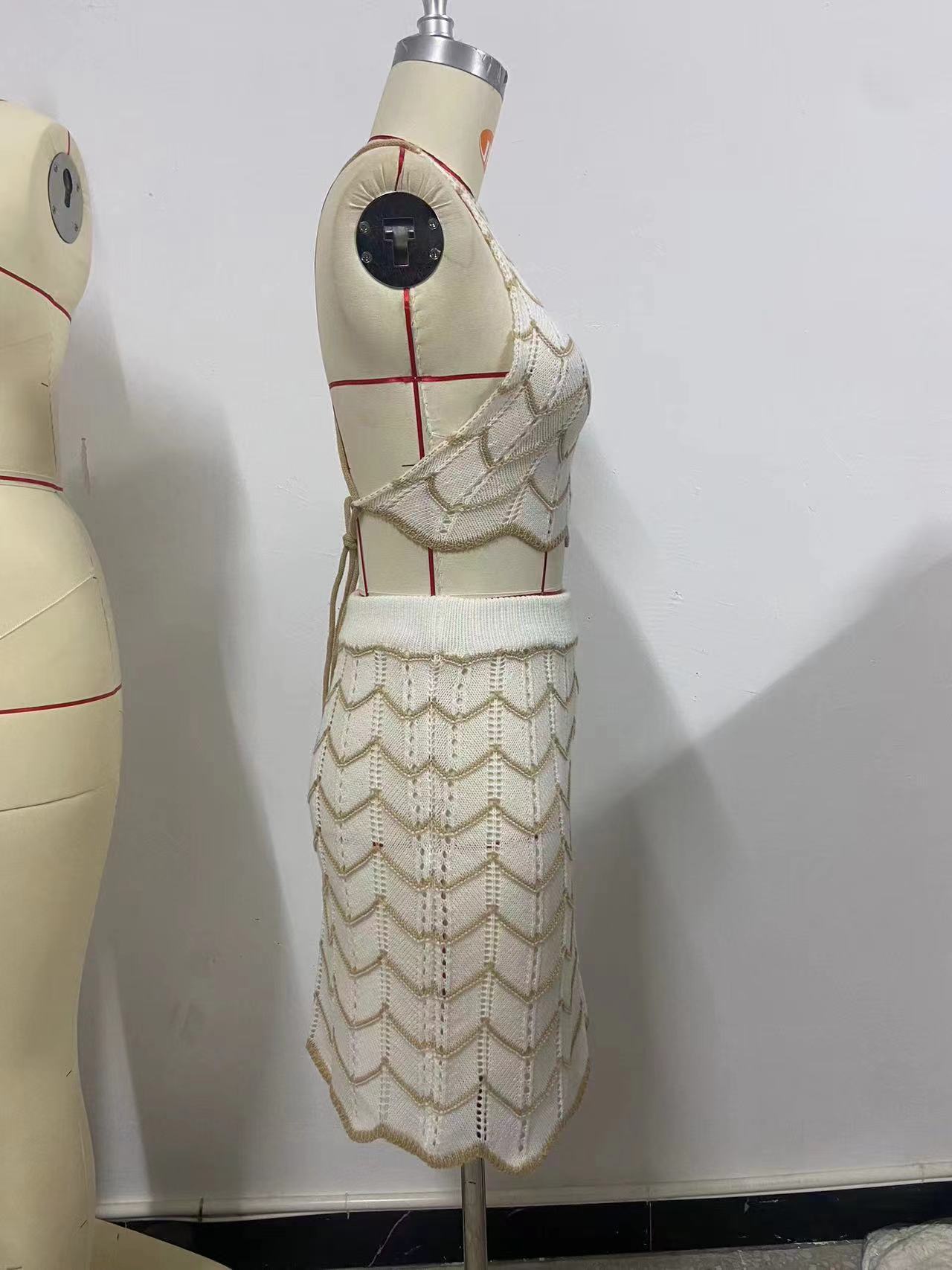 AJ4452 Cross border Platform European and American Women's Knitted Elastic Sports Casual Skirt Sweater Short SetItem NO.: 2565089