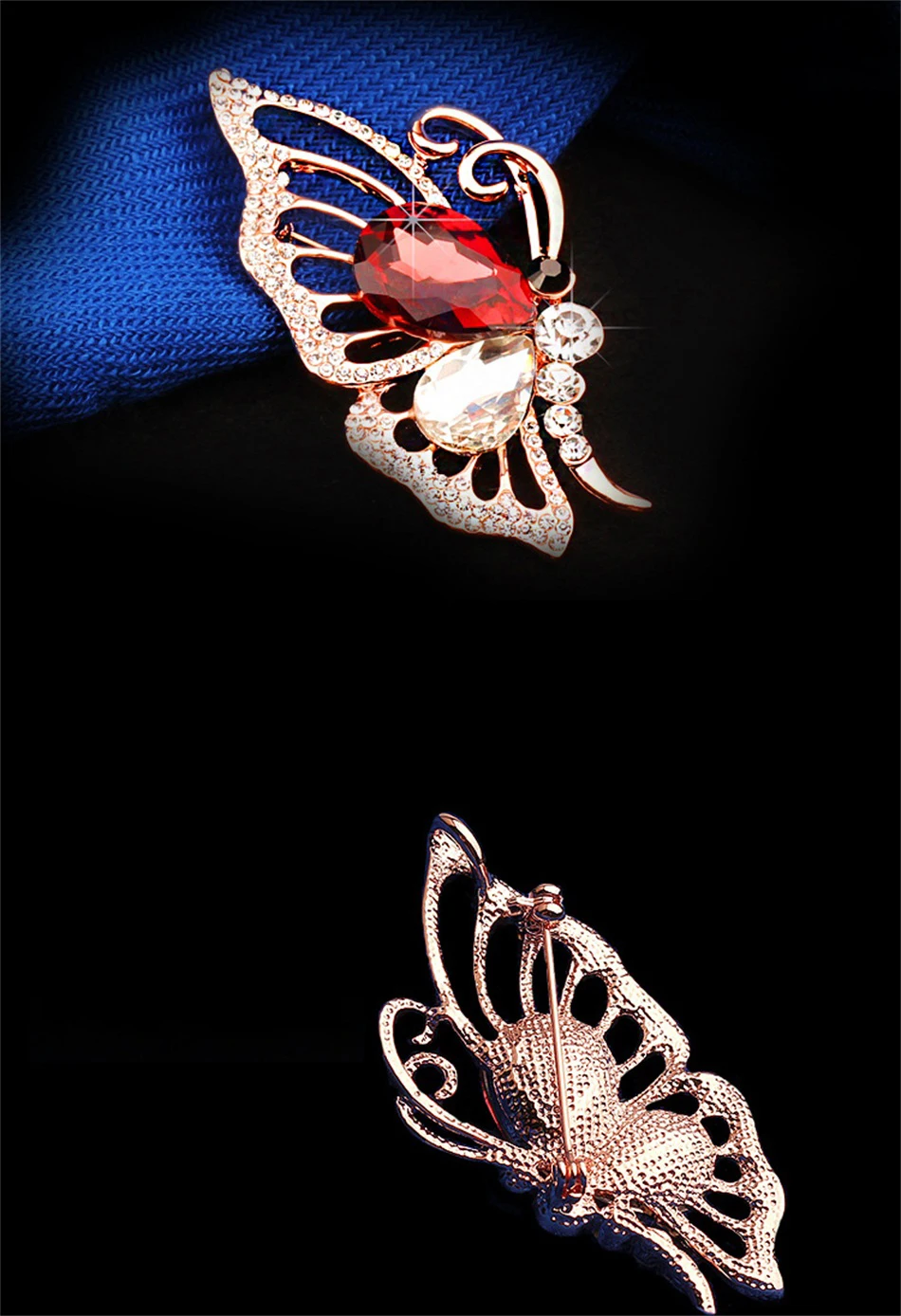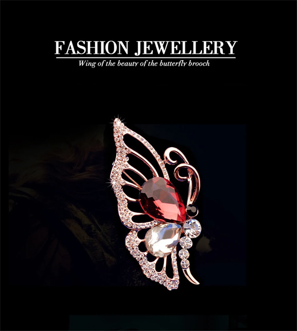 Beauty Butterfly Brooch Rhinestone Alloy Pins Women's Clothing with Classical Elegant Pins B000516