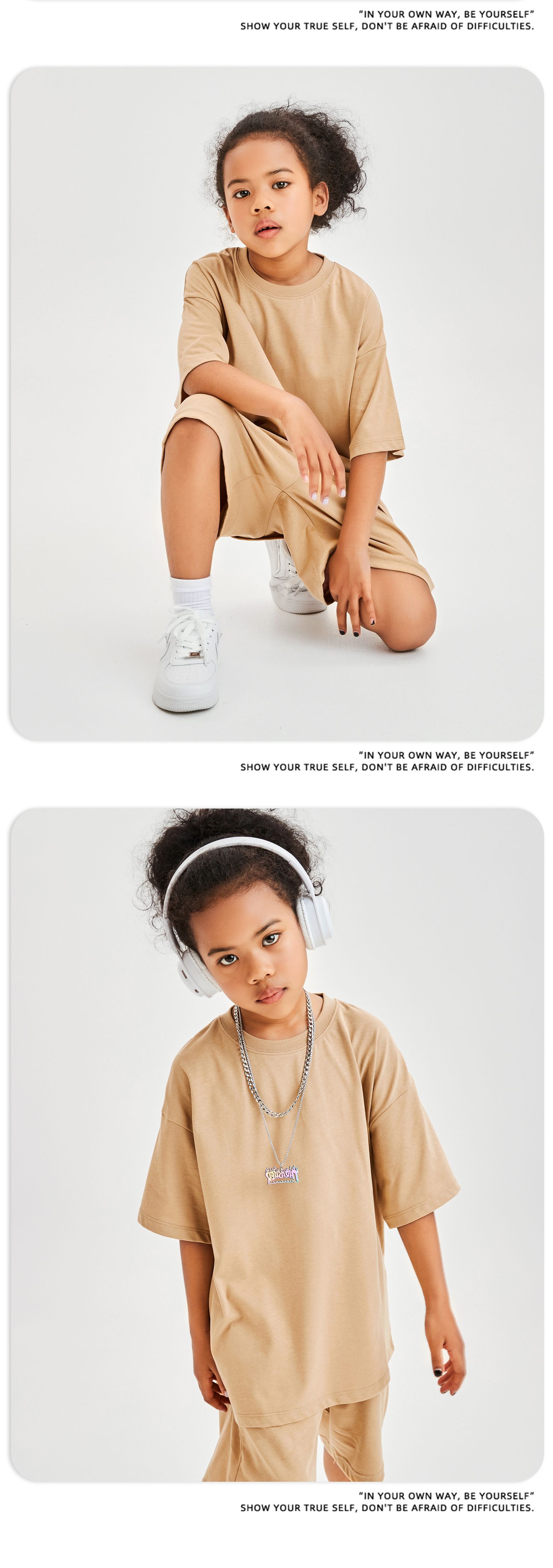 Product Name: Children's clothing European and American trendy brand spring/summer FOG earth color series 230G drop shoulder men's and women's short sleeved T-shirt