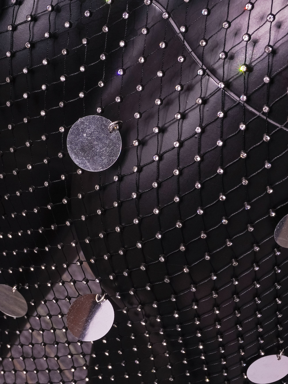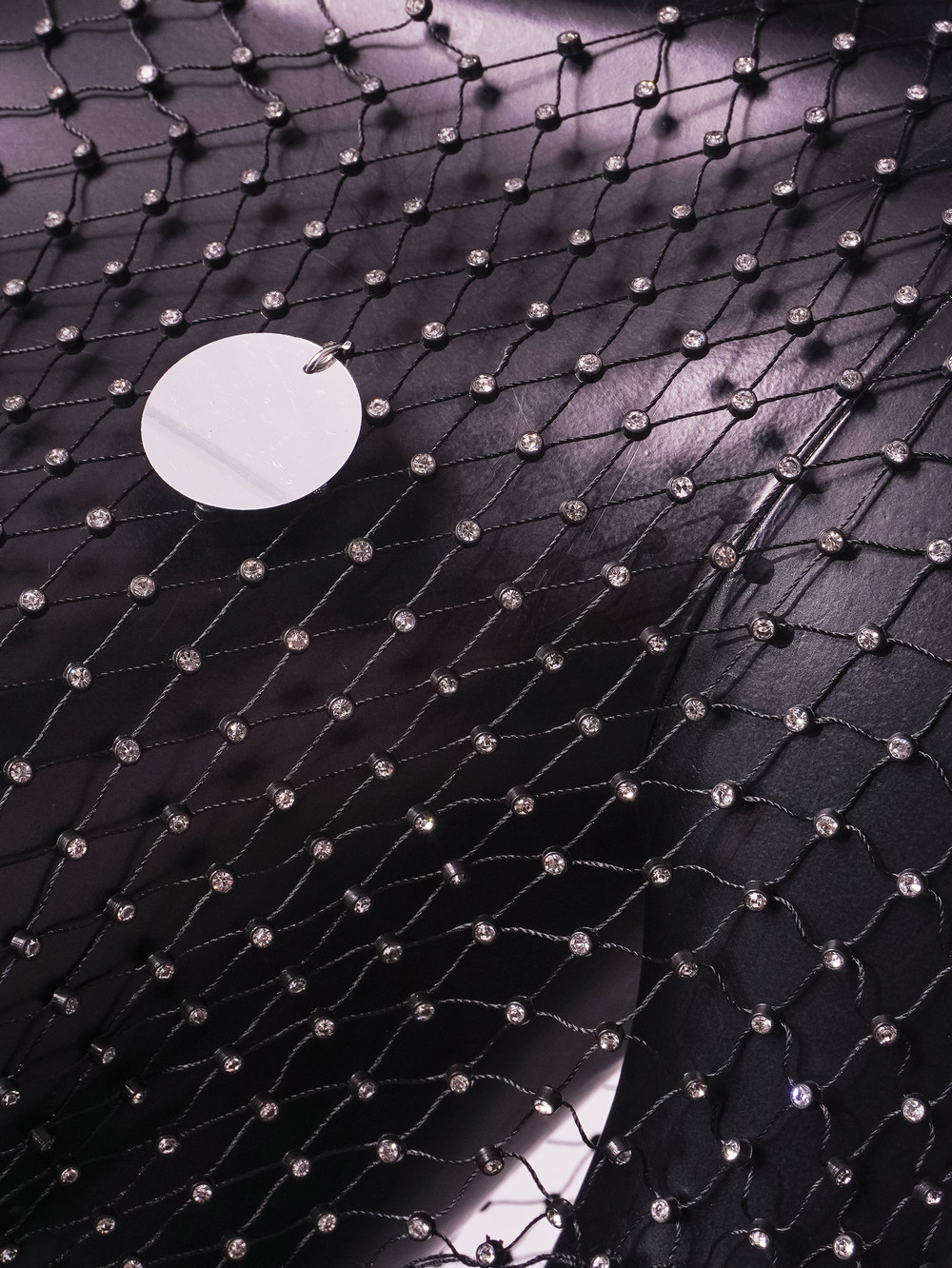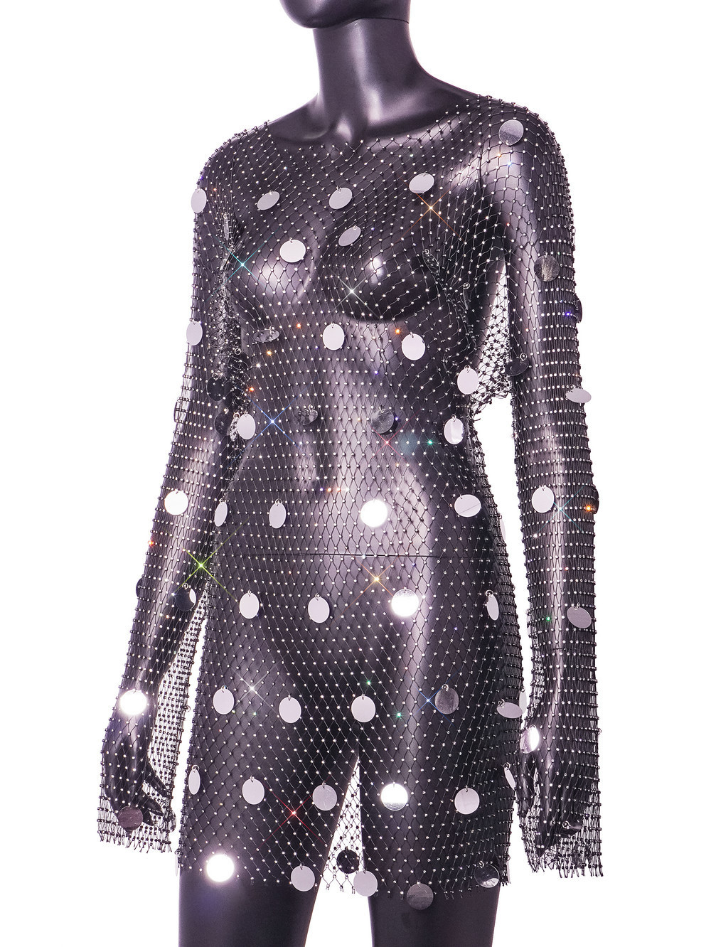 Product Name: European and American foreign trade women's clothing transparent sexy nightclub women's clothing grid sparkling diamond round neck long sleeved top