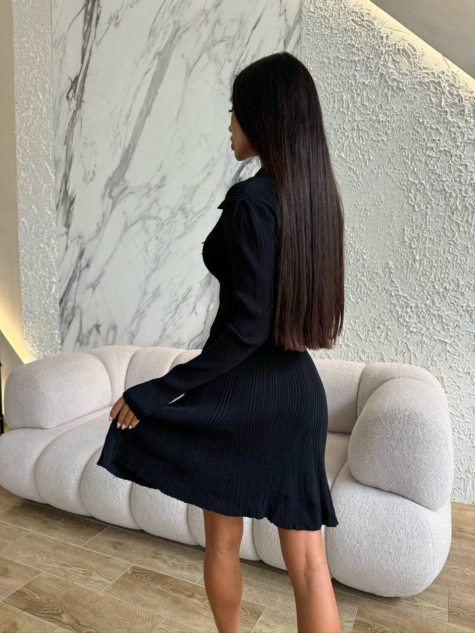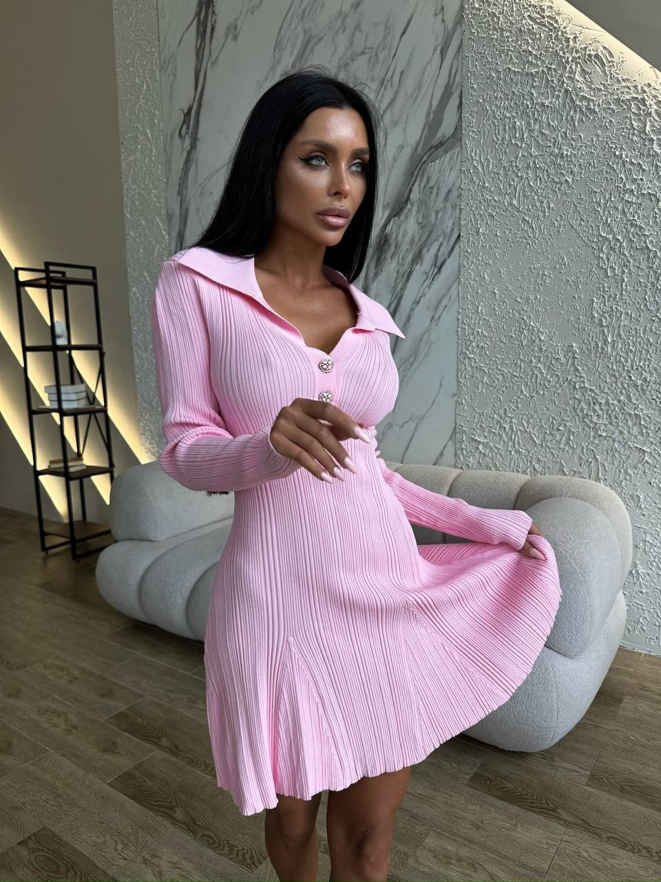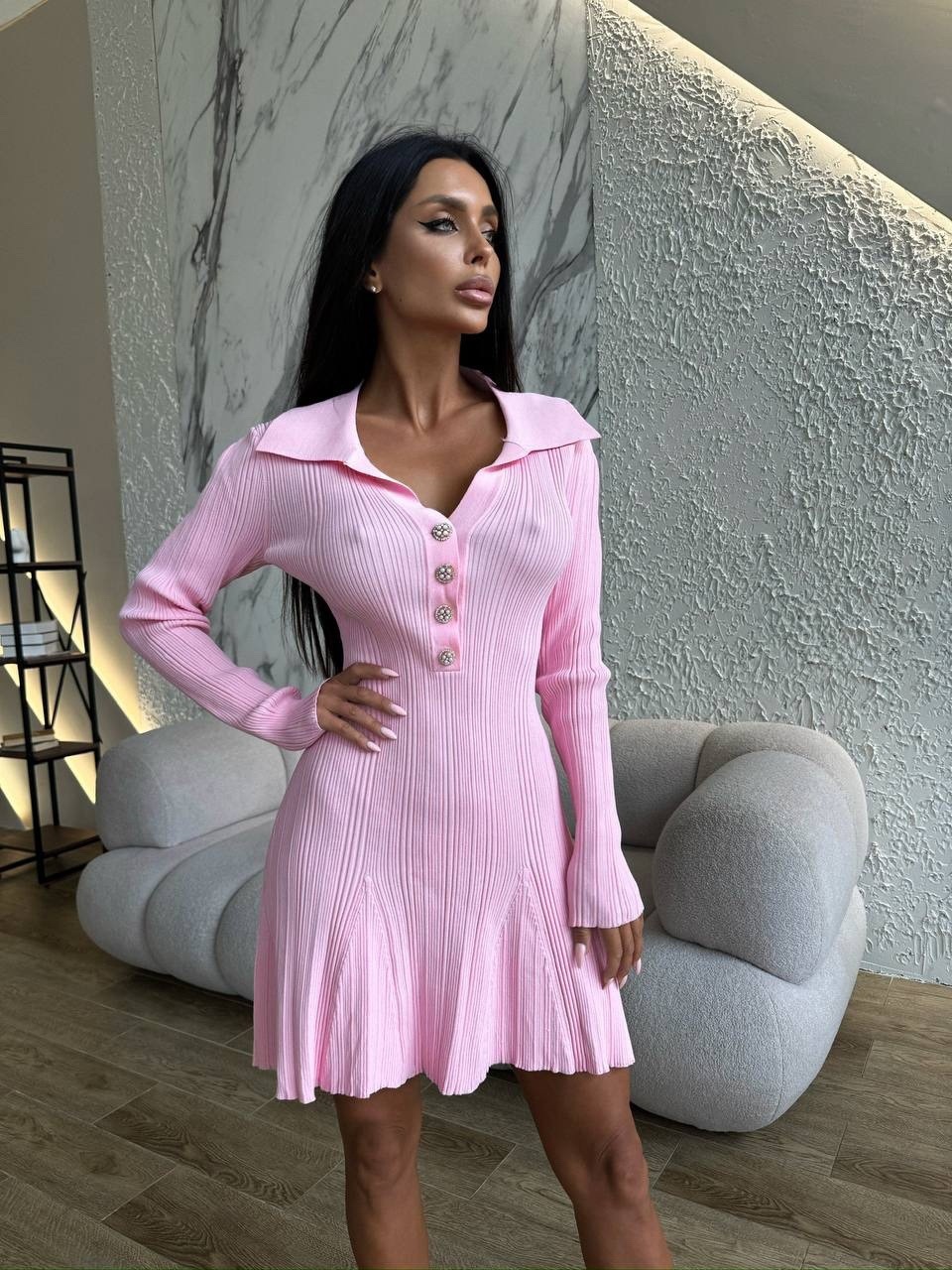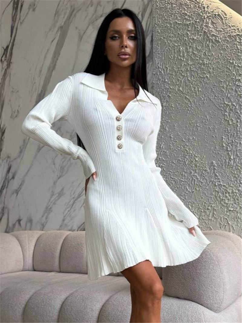 Home>Products>Women>Clothes>Dress>Spring&Autumn>Flip collar long sleeved striped knitted skirt A-line dress