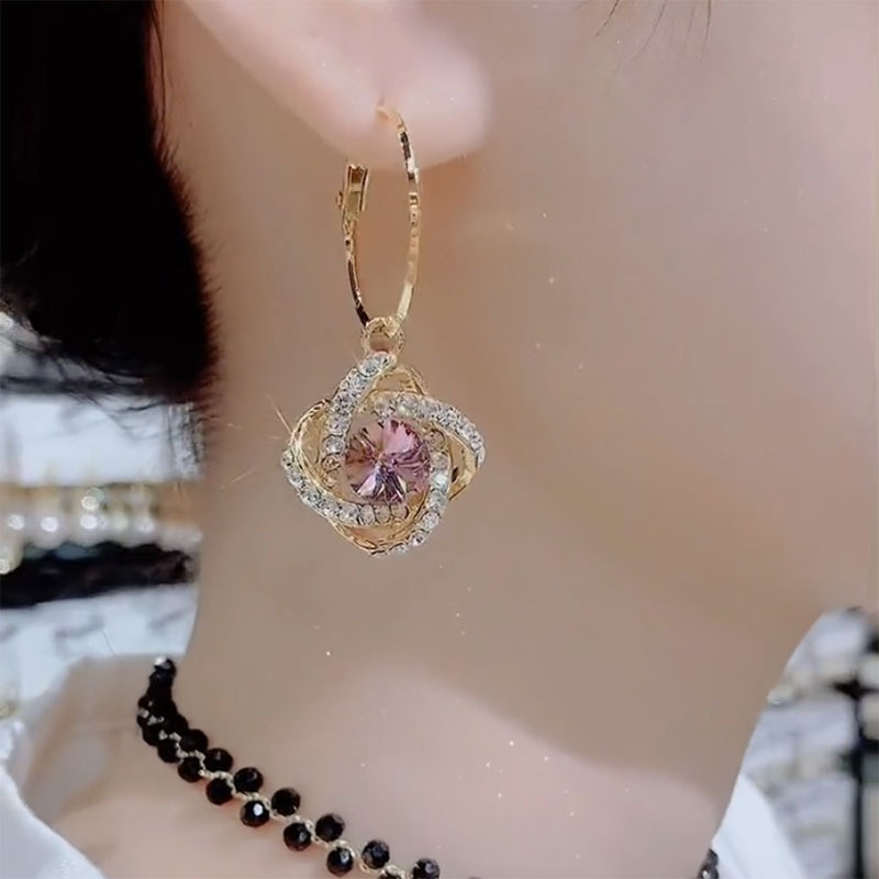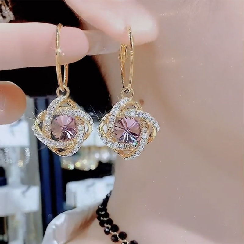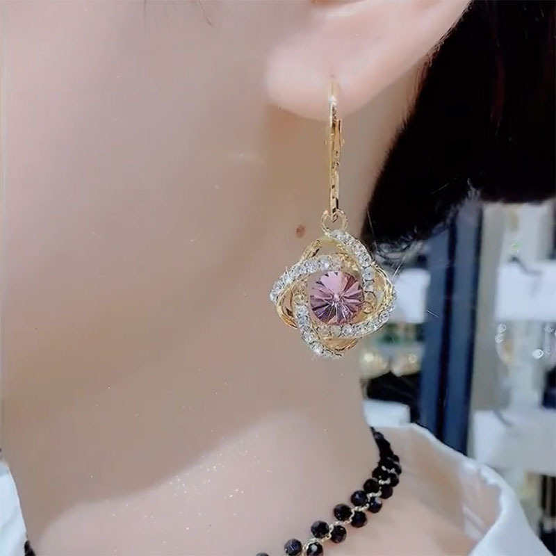 High end purple flower earrings, exquisite crystal earrings, light luxury and versatile ear buckle earrings