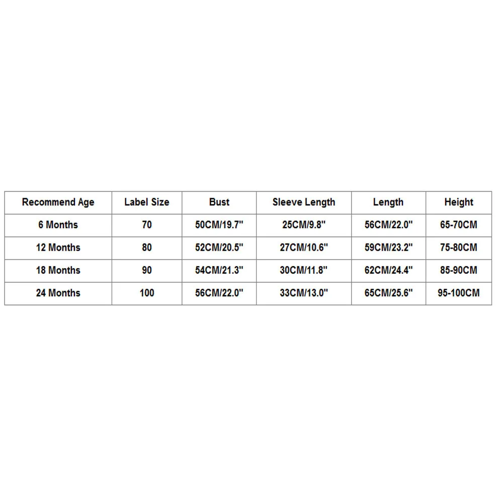 | Recommend Age | Label Size | Bust | Sleeve Length | Length | Height |