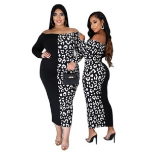 New Fashion Lady Dress One-shoulder Cow Print Pattern Plus Size Long Sleeve Dress 861021