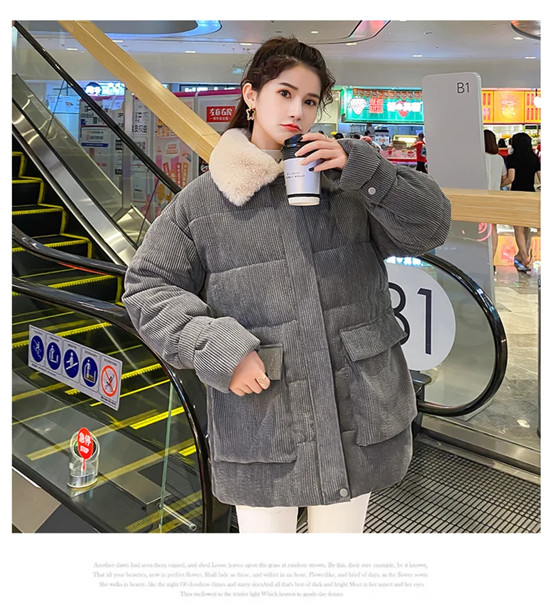 Fashion Fur Collar Cotton Padded Jacket Women W...