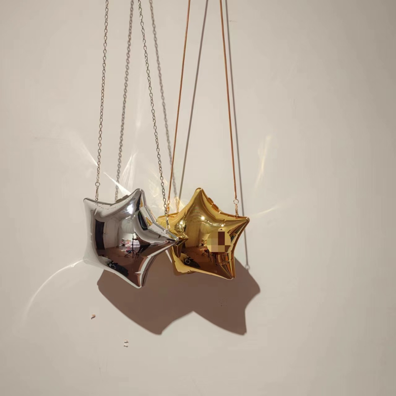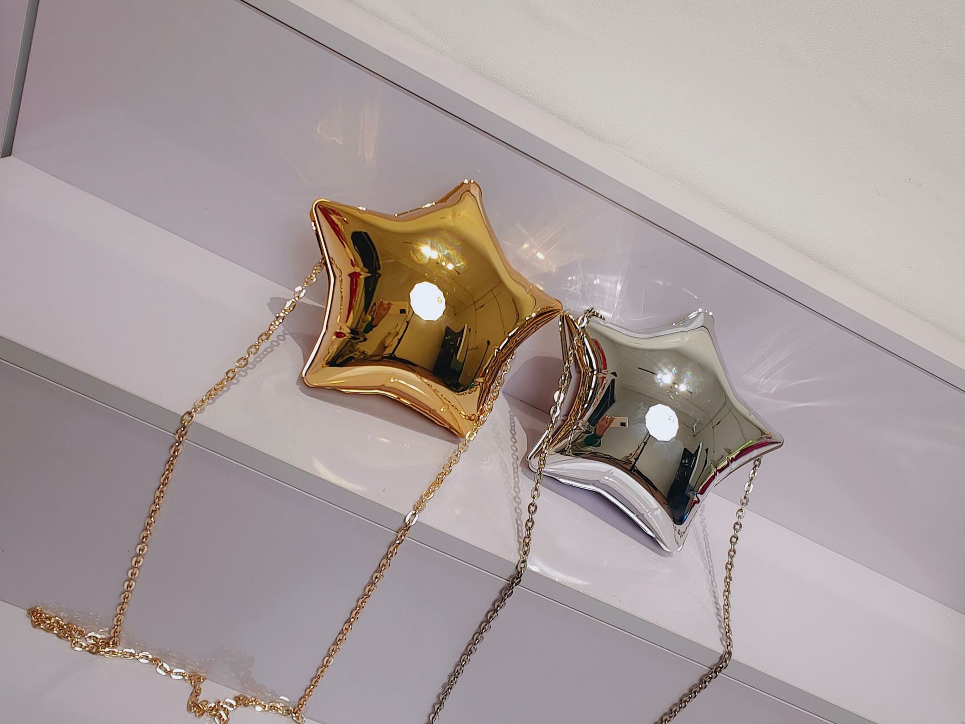 Home>Products>Accessorries>Bags>handbags>Silver acrylic shiny and ineffective mini pentagonal star bag, small and cute, exquisite box, chain, crossbody small bag