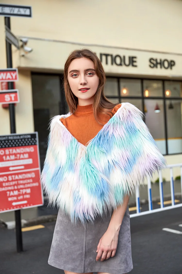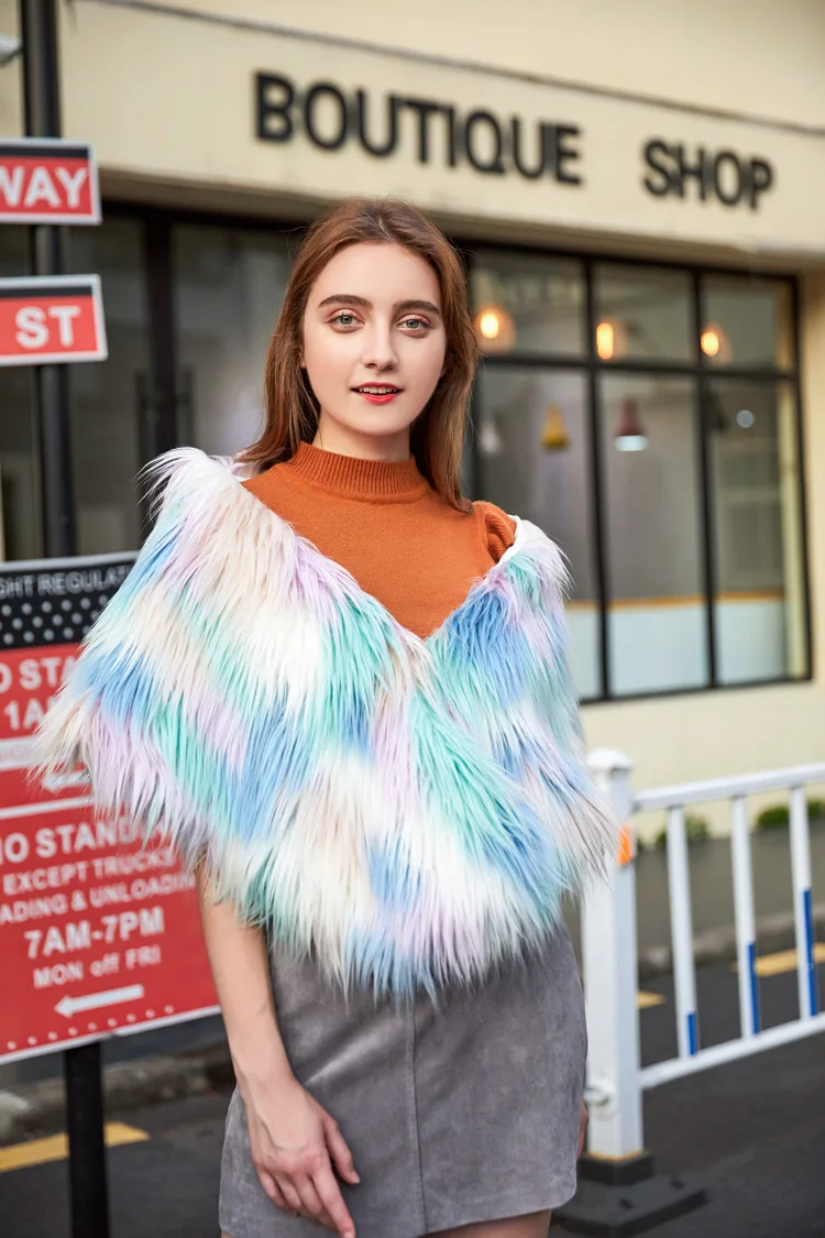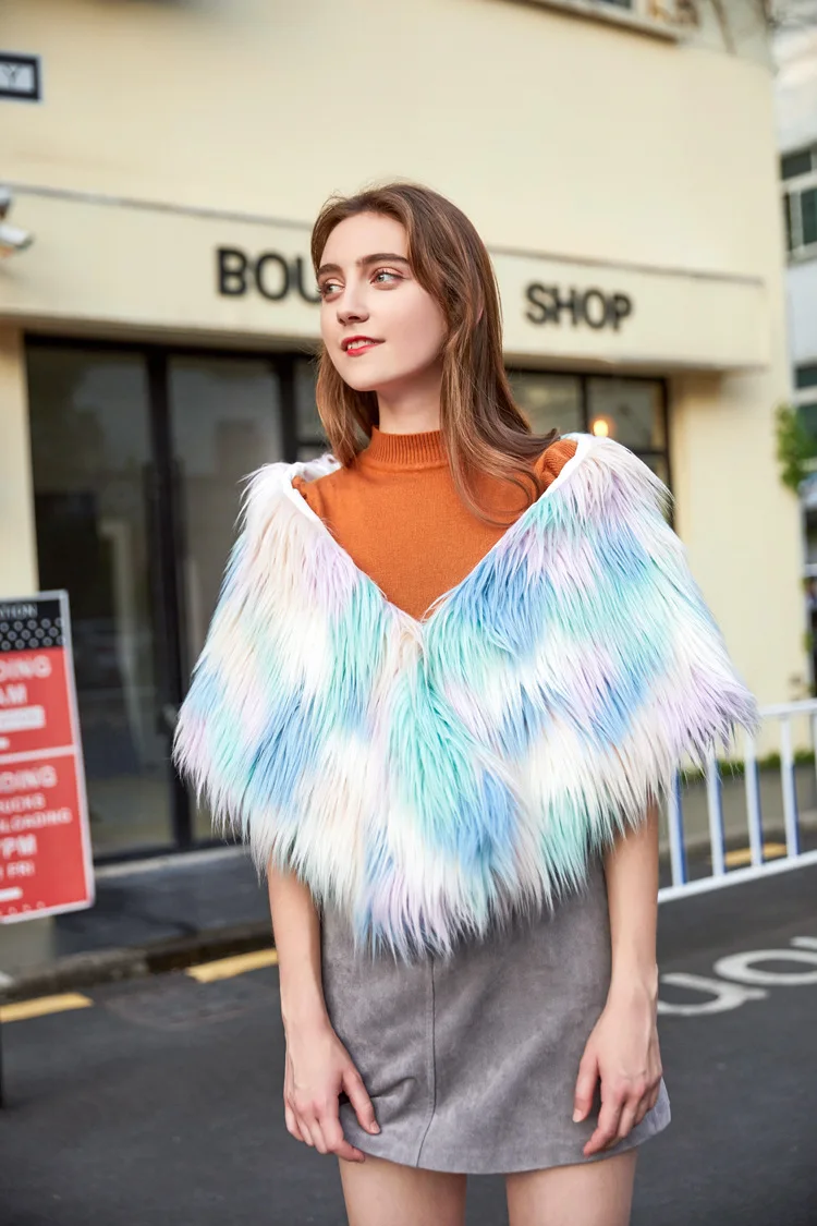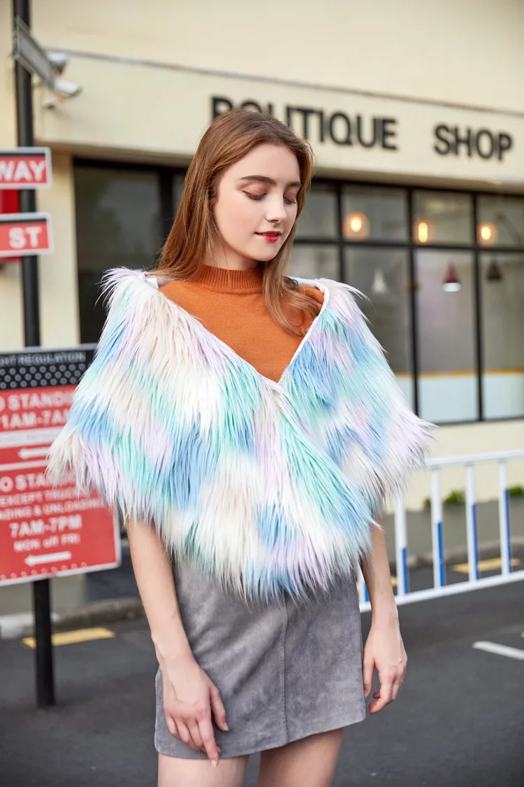 Nightclub Party Cape Fur Dress Waistcoat Faux F...