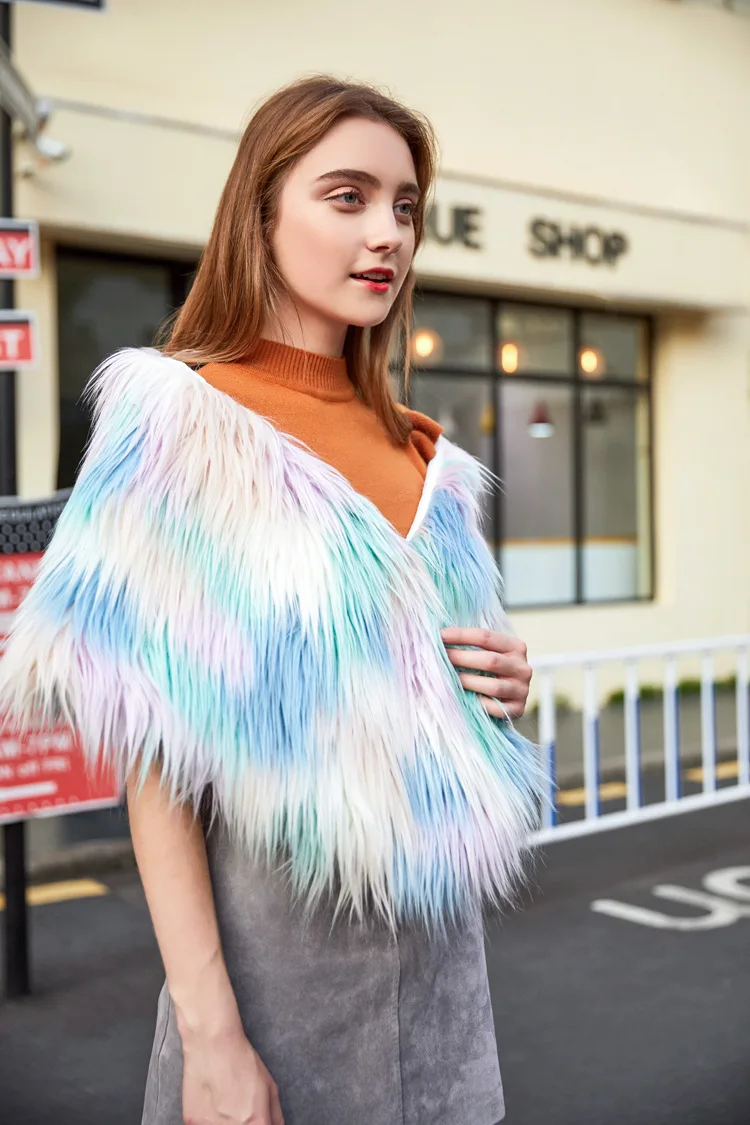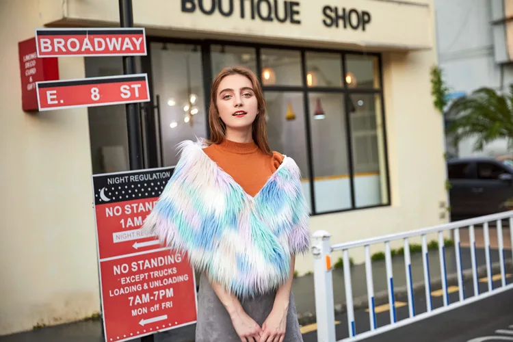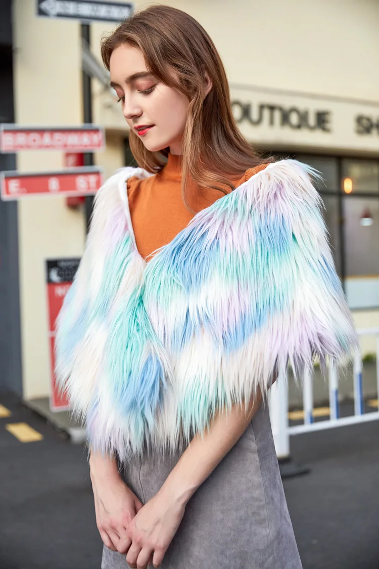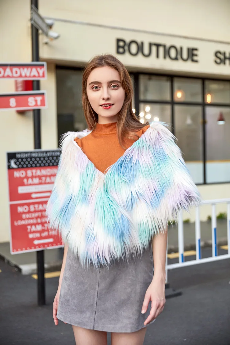 Nightclub Party Cape Fur Dress Waistcoat Faux F...
