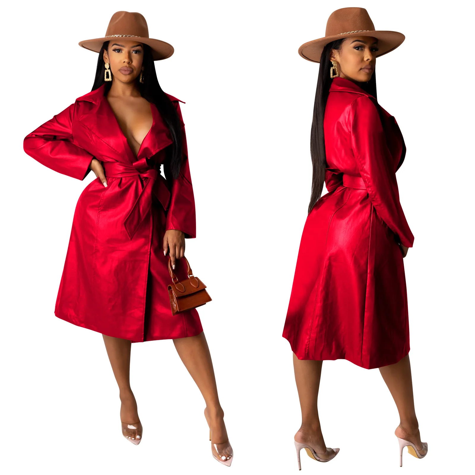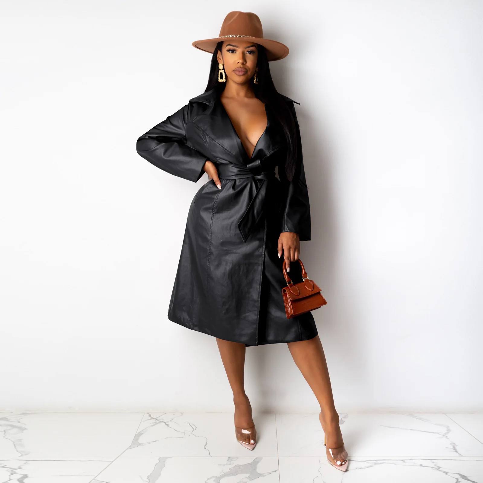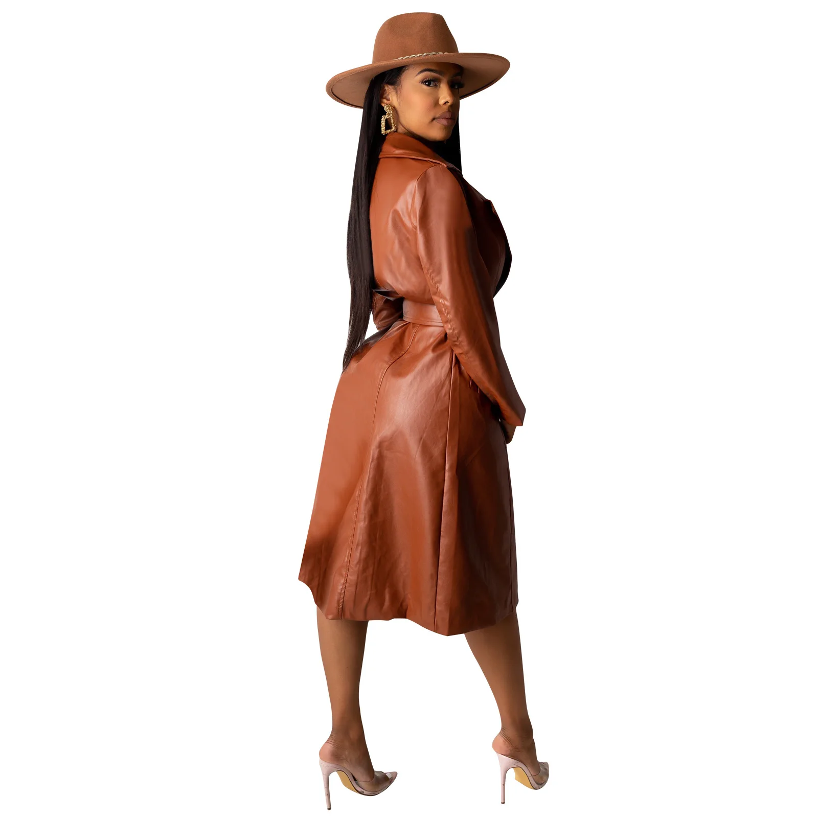 Winter Pu Leather Jacket Coat Long Coat 414025