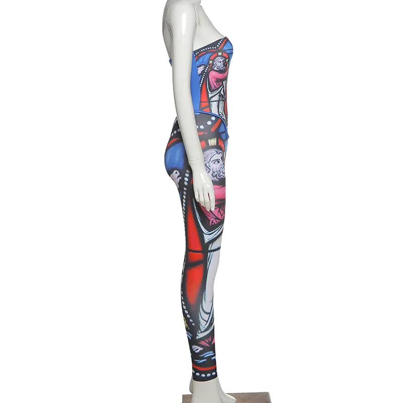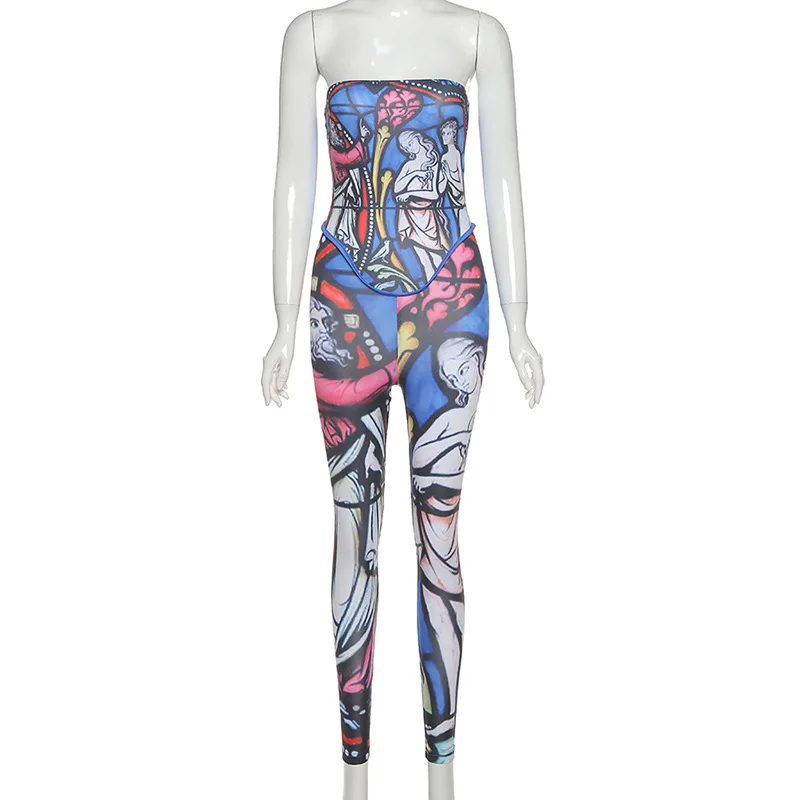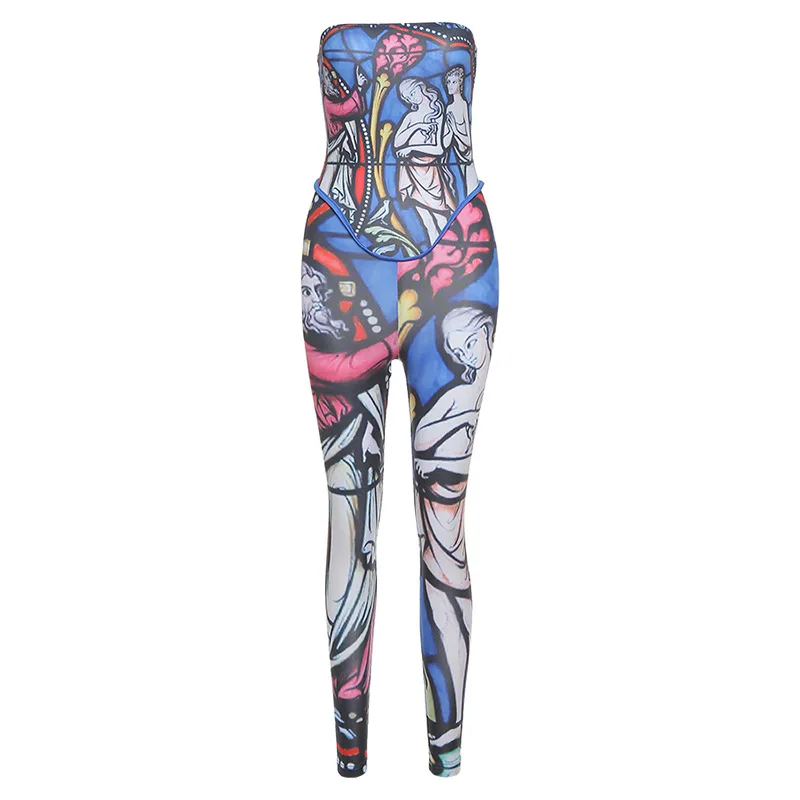 Women Sexy High waist Tube Top Printed Bodysuit Bodysuits 173647b
